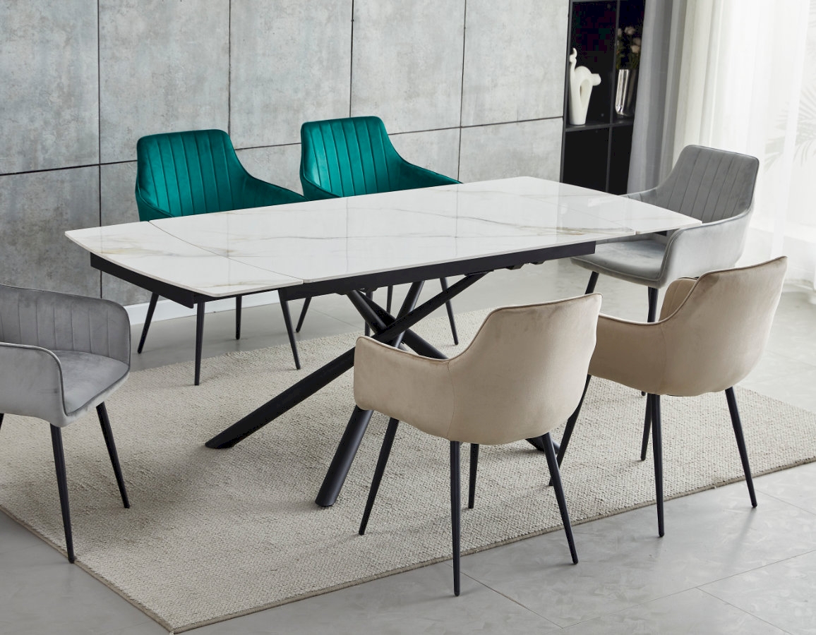 Moderan rastezljivi stol pravokutnog oblika i visokog sjaja dostupan u prekrasnoj boji zlatnog mramora.