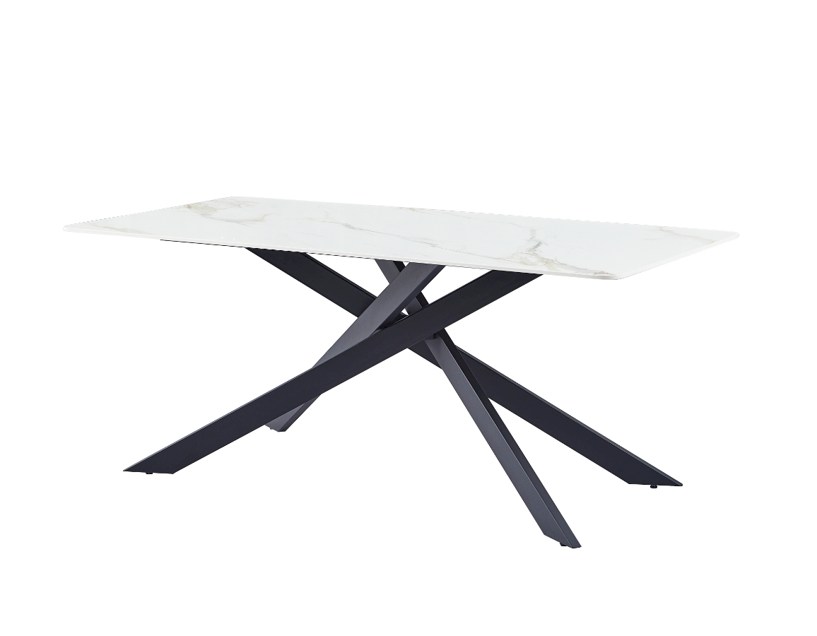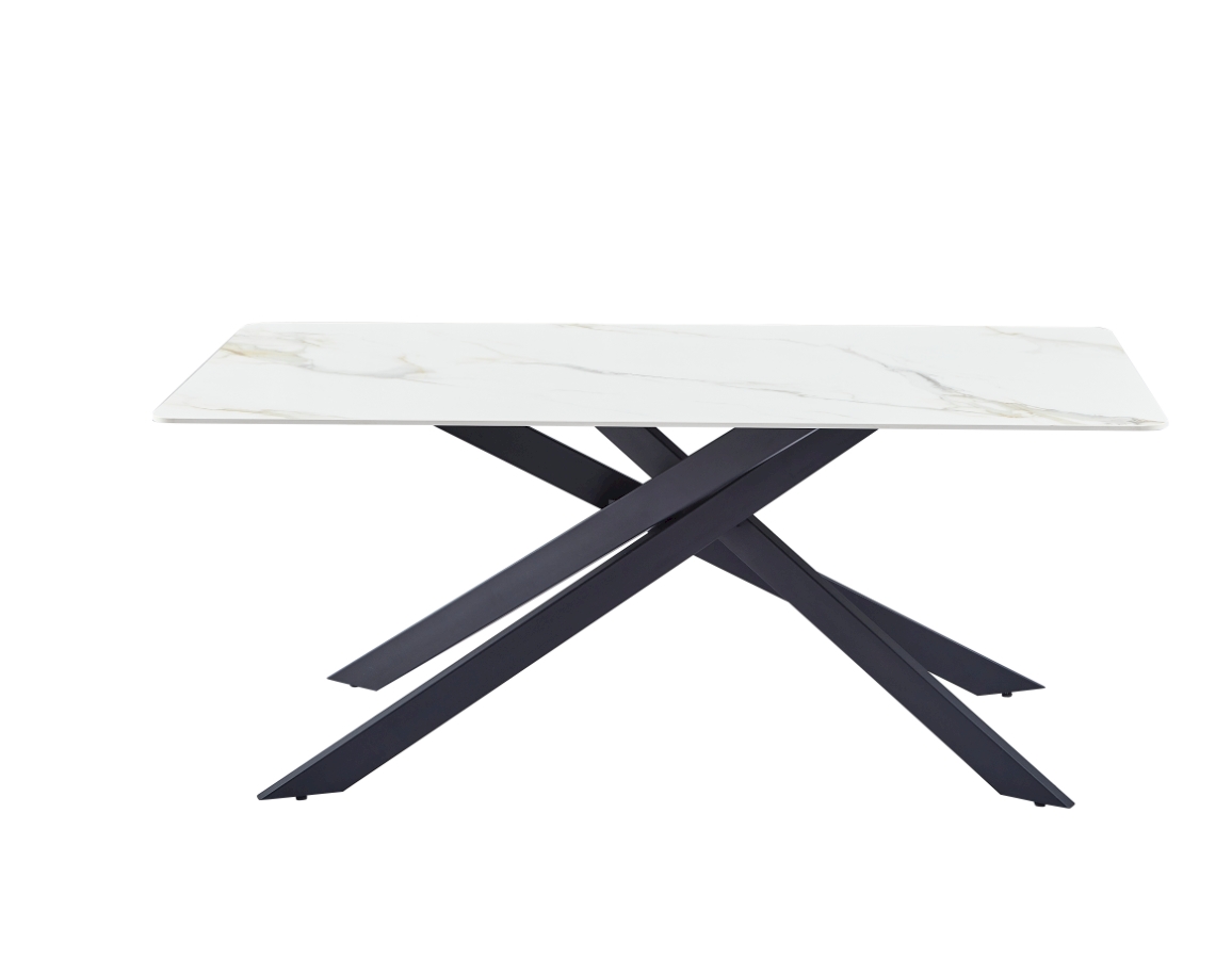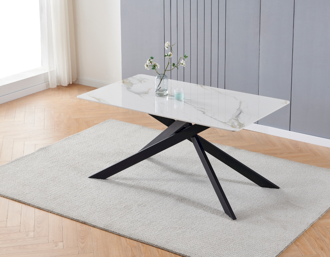 Ploča stola debljine 12 mm izrađena je od sinteriranog kamena s prekrasnim mramornim uzorkom u bijeloj boji sa zlatnim žilama.