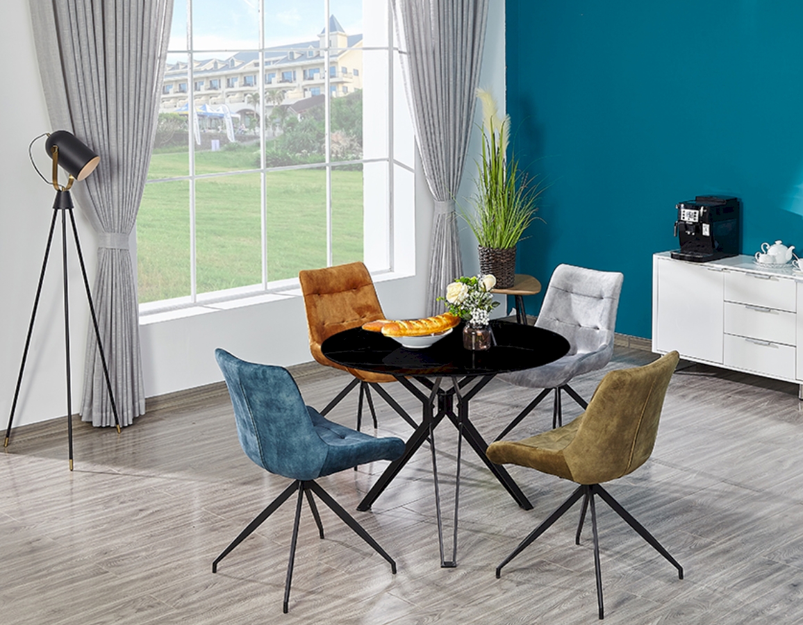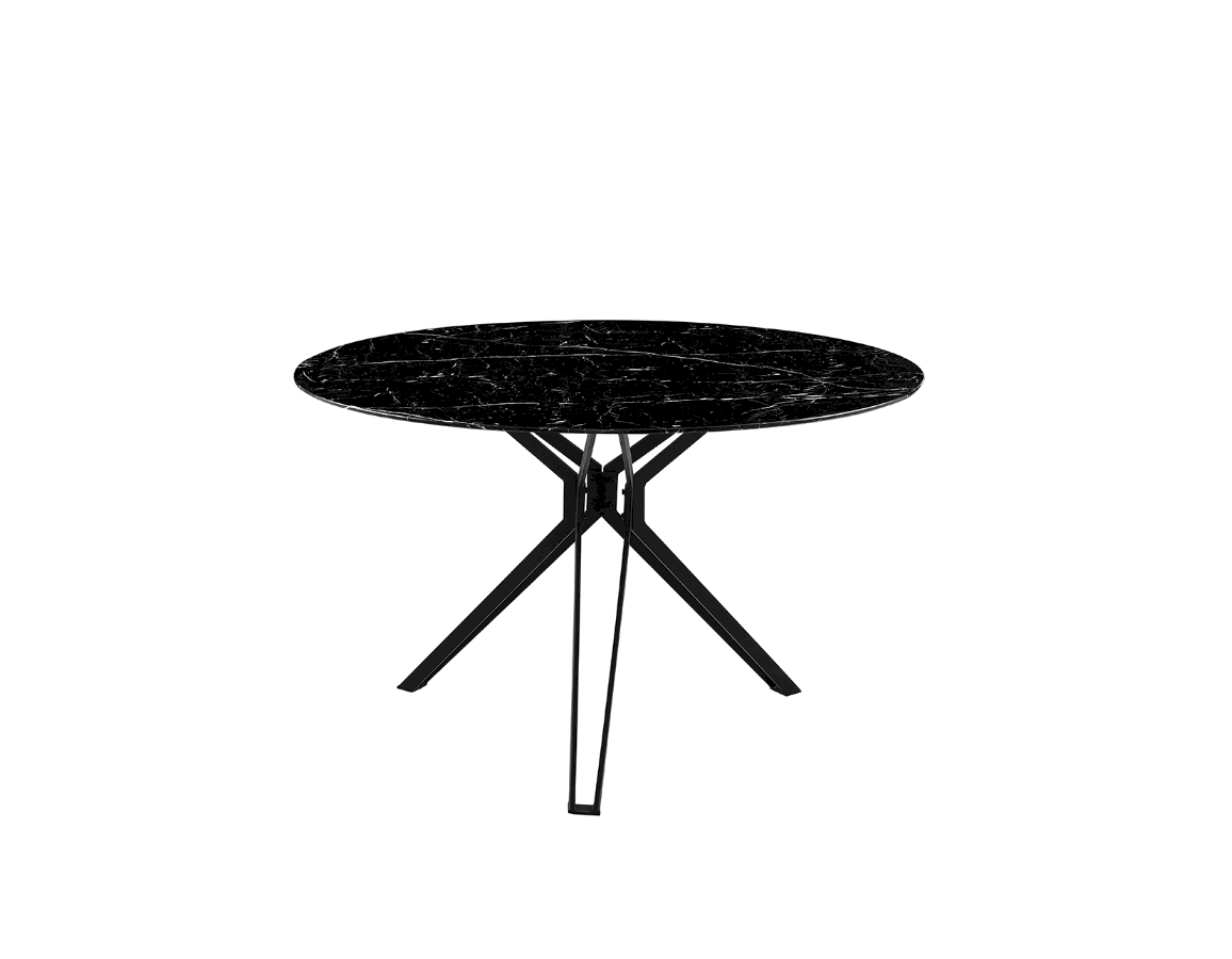 Ploča stola je kaljeno staklo debljine 8 mm u dekoru crnog mramora.