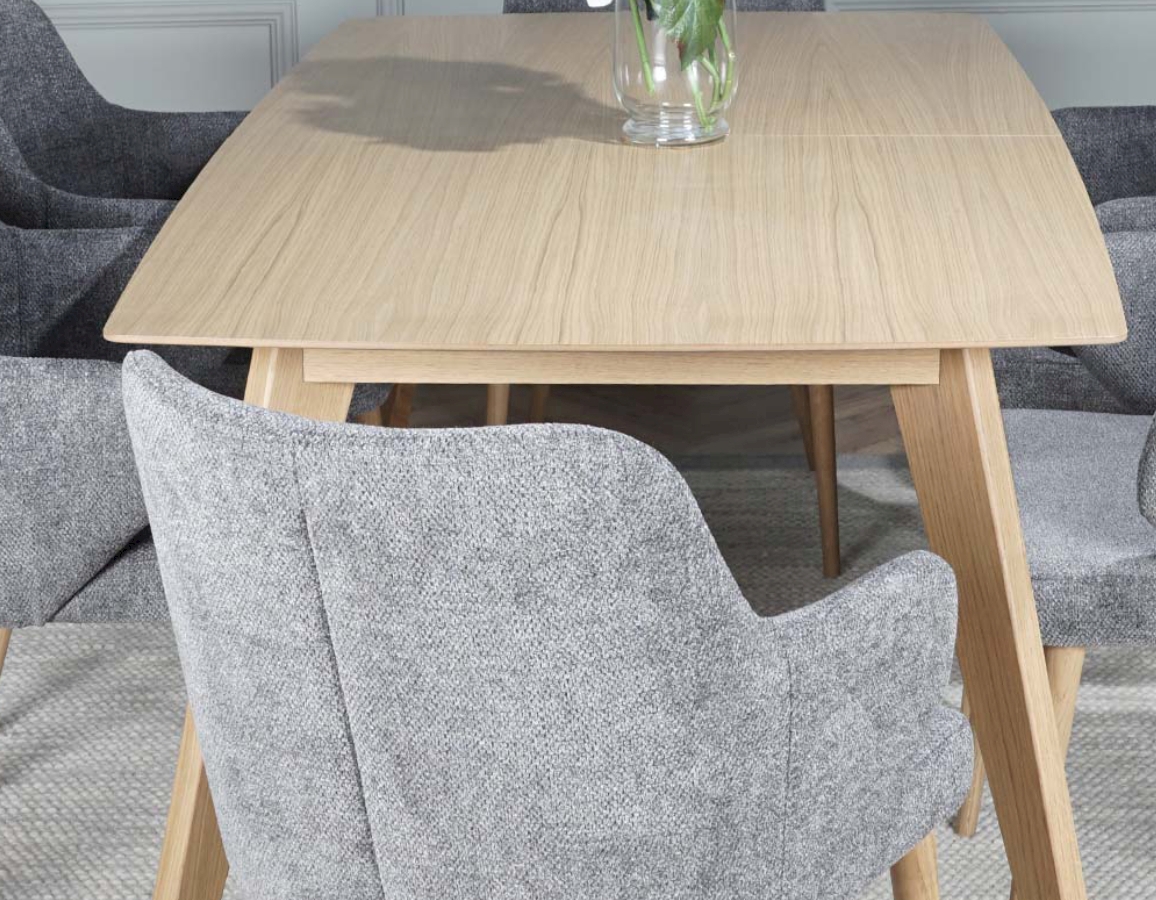 Skandinavski dizajn sa zaobljenim rubovima i kosim nogama uz mogućnost kombiniranja materijala.