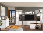 Sustav BURGUNDY elemenata za opremanje dnevnog boravka karakterizira hrabra kombinacija dekora s kontrastnim elementima, ali i jednostavna dizajnerska forma, koja daje jasnu definiciju interijeru. Iskorak u kontrastnom dekoru doprinosi profinjenosti i eleganciji cjelokupnog ambijenta. Kombinacija toplog dekora hrasta flagstaff i bijele lak folije predstavlja novu razinu estetske smjelosti koja karakterizira najmodernije domove, dok metalne ručke unose dodatnu ozbiljnost u dizajn ovog sustava elemenata.