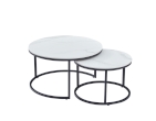 Set od dva okrugla stolića. Ploče stolova izrađene su od sinteriranog kamena s prekrasnim mramornim uzorkom i debljine su 1,2 cm.