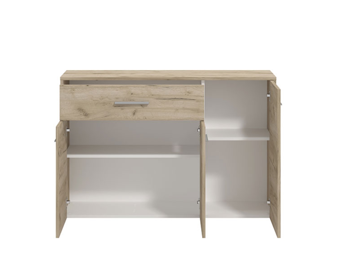 Dobro raspoređen korisni prostor ove komode sastoji se od tri zatvorena dijela s policom i praktičnom ladicom.