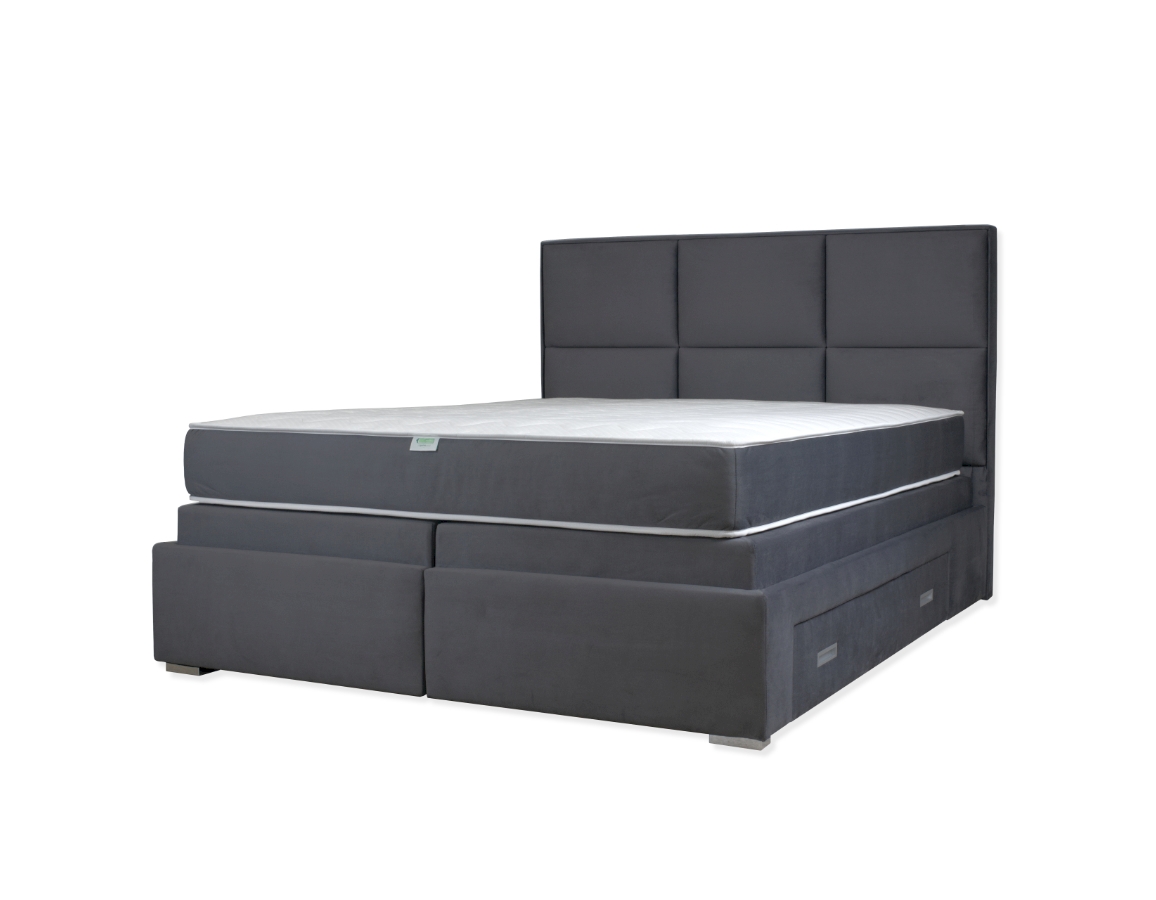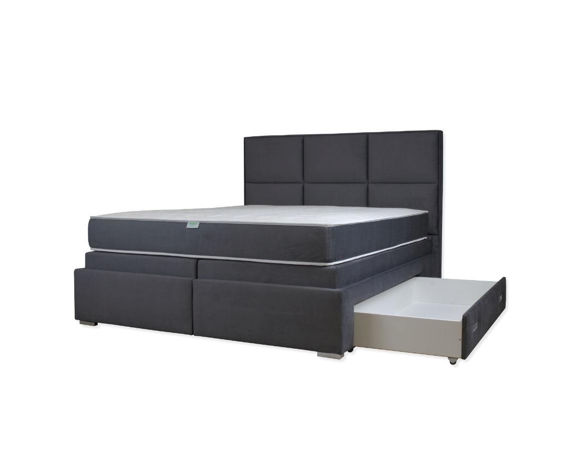 Za razliku od boxspring sustava, kod klasičnih podnica opterećenje ostaje samo na madracu na kojem ležimo, što znači da se takvi madraci trebaju češće mijenjati. Prednost boxspring kreveta je i visina koja omogućuje lakše lijeganje i ustajanje pri čemu je smanjen pritisak na zglobove. Dodatna pogodnost našeg boxspring kreveta ADONIS su ladice za posteljinu ili garderobu koje dolaze s obje bočne strane kreveta.
