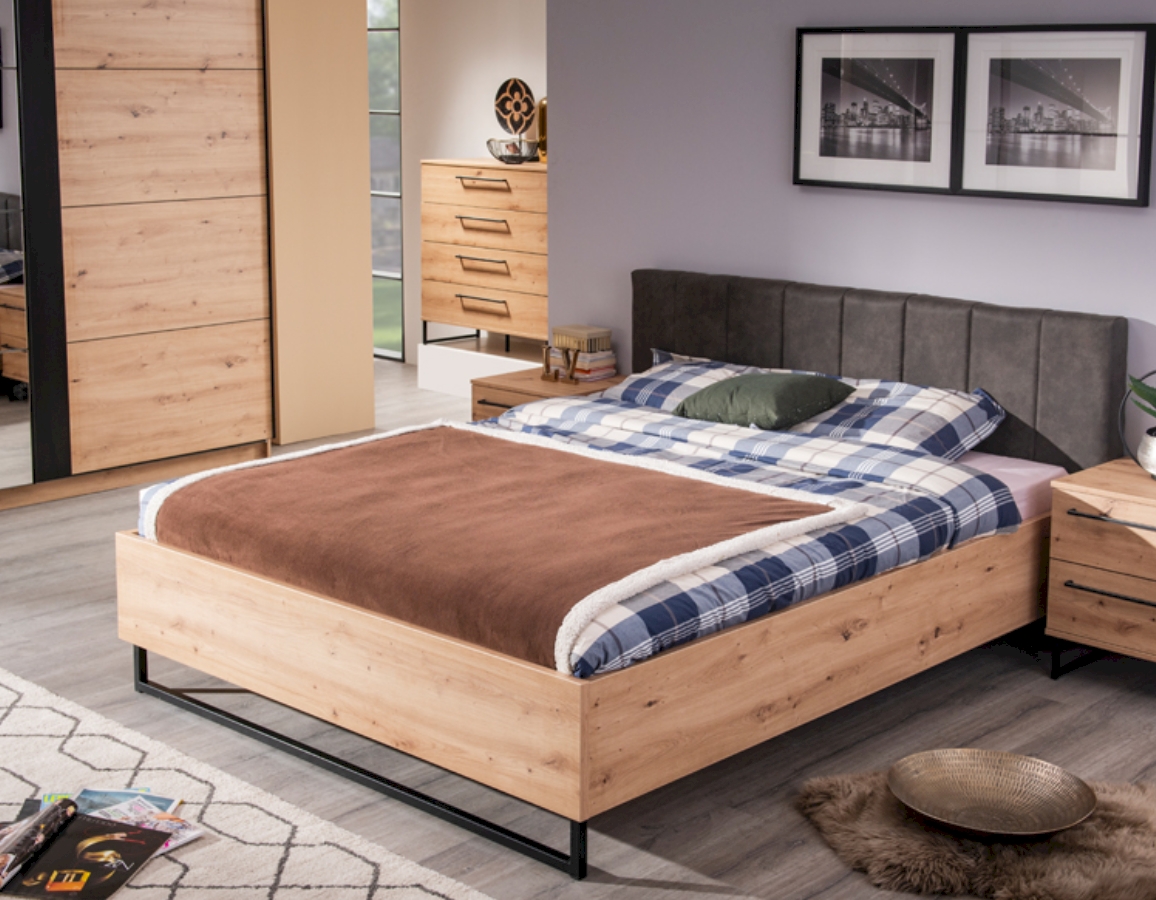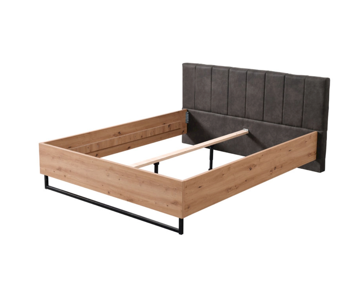 Boja: hrast, crne metalne nogice, sivo tapecirano uzglavlje