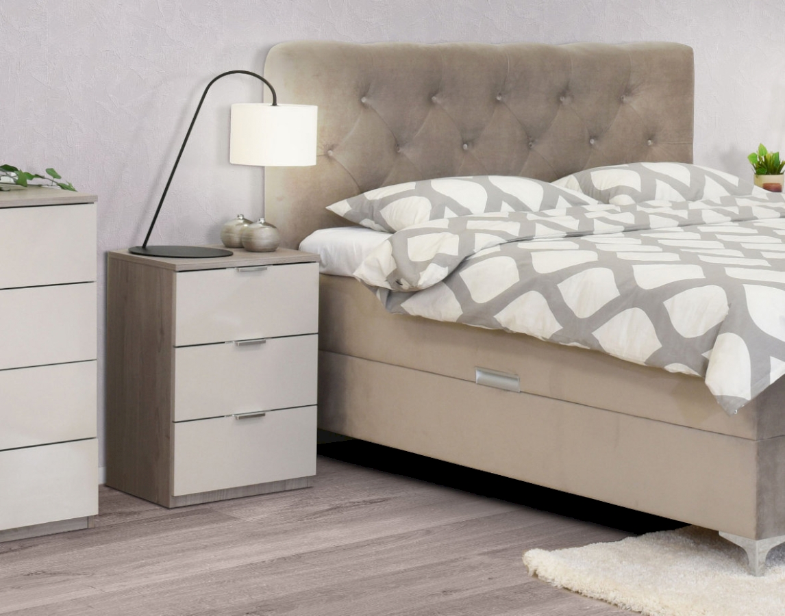 Kombinacijom suvremenih materijala i minimalističkog dizajna stvoreni su ELEGANCE LINE noćni ormarići sa 3 ladice. ELEGANCE LINE noćni ormarići 3F izrađeni su od oplemenjenog iverala debljine 18 mm, sadrže tri ladice na metalnim klizačima i sa metalnim ručkama. Osim upotrebe u spavaćim sobama, noćni se ormarić može koristiti i kako mini komode u dječjim sobama i uredima.