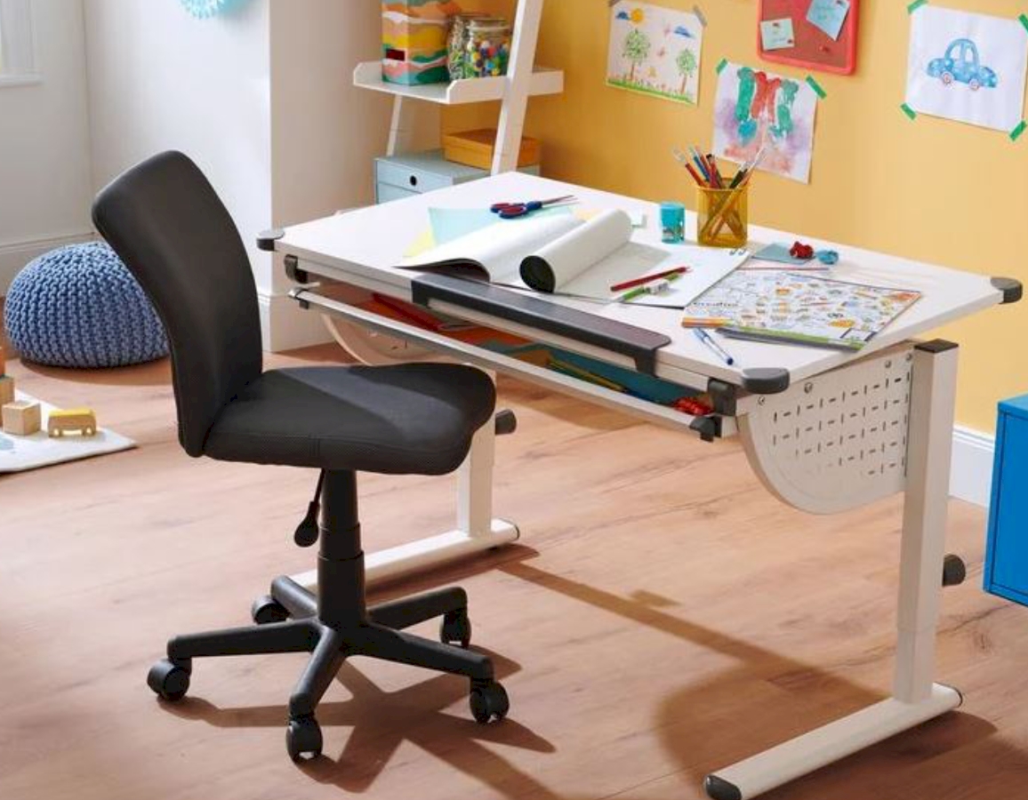 Jednostavna dječja uredska stolica s ergonomski oblikovanim naslonom.