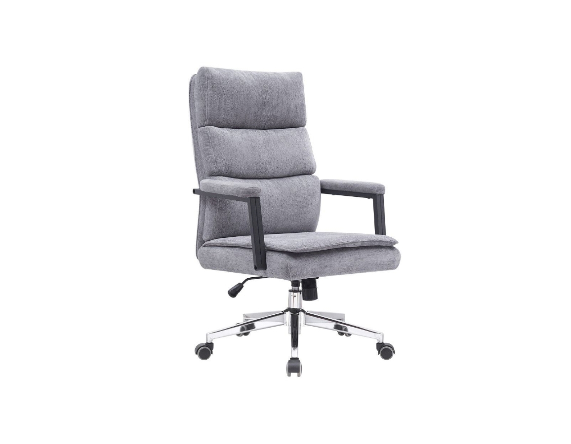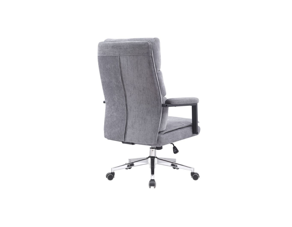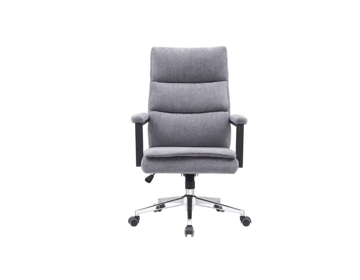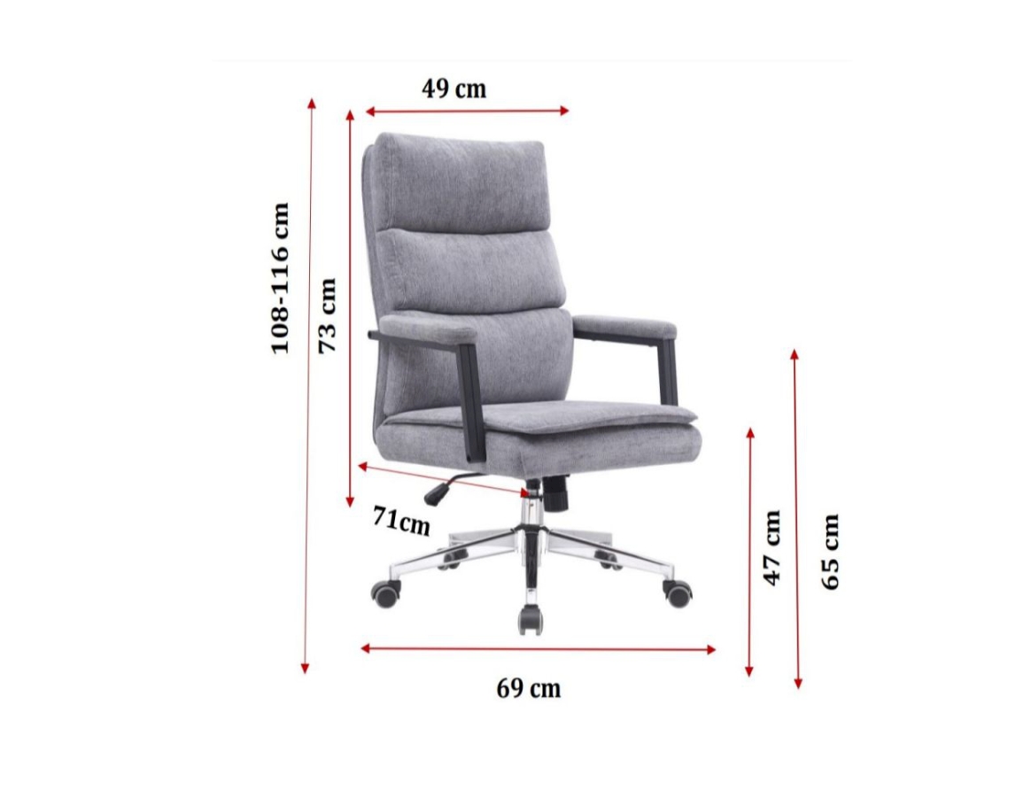 Uredska stolica dizajnirana za udobnost i funkcionalnost, što je čini izvrsnim dodatkom svakom radnom prostoru. Presvučena je kvalitetnom tkaninom u sivoj boji. Stolica ima mekani podstavljeni naslon koji pruža izvrsnu potporu za gornji dio tijela i potiče zdravo držanje tijekom dana.