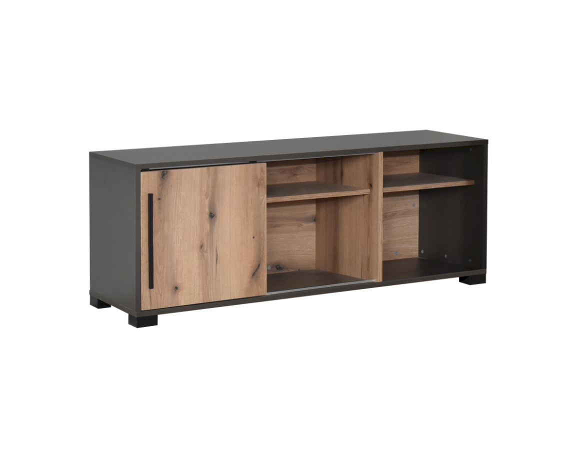 Komoda je izrađena od iverala u kombinaciji artisan hrasta i sive.