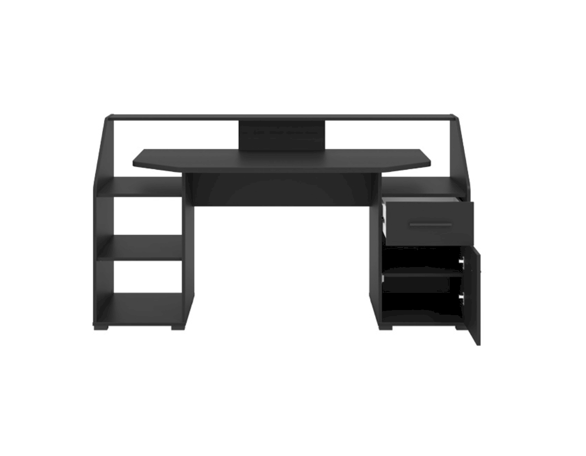 Radni stol BLETCHLEY u crnoj boji idealno je rješenje za opremanje radnog kutka, jer osim izuzetno atraktivne estetike, ima i izraženu funkcionalnost. Praktično postavljene otvorene i zatvorene police, kao i jedna ladica, pružaju obilje prostora za pohranu, dok radna površina ističe udobnost i daje dovoljno prostora za rad.