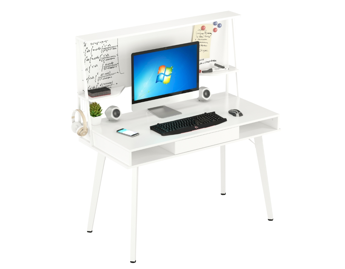 Stražnji dio stola uokviren je bijelom pločom po kojoj se može pisati flomasterima ili može služiti kao magnetna ploča za pričvršćivanje podsjetnika i poruka.