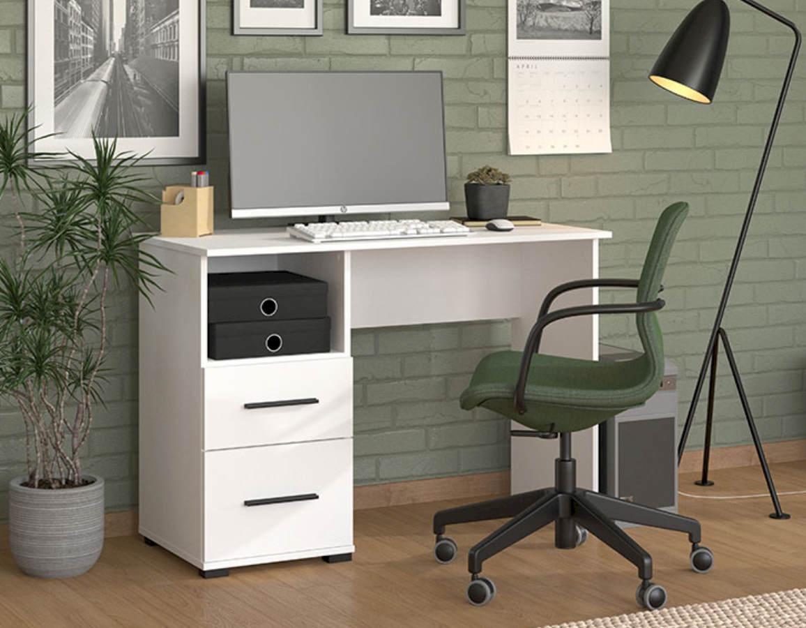 Praktična radna površina i funkcionalni sustav s dvije ladice i otvorenom policom, donosi sve potrebno za savršenu organizaciju radnog prostora.