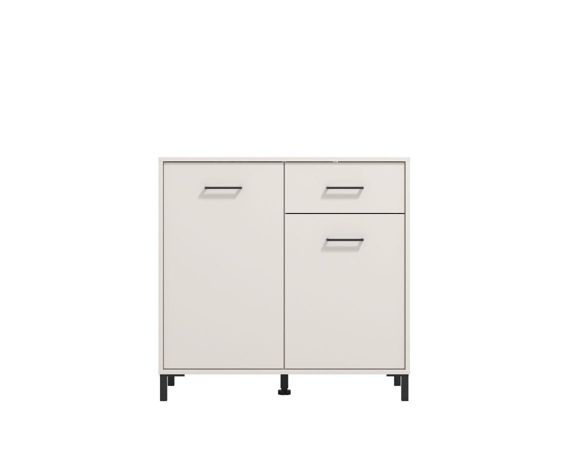 Komoda se sastoji od dva zatvorena dijela s vratima i jednom ladicom.