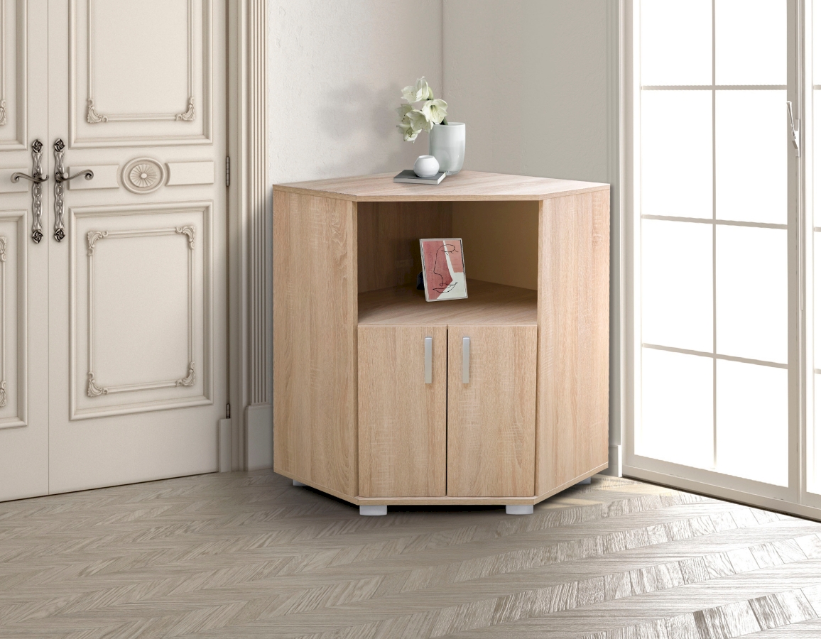Kutna komoda Roma izrađena je od iverala u boji hrasta.