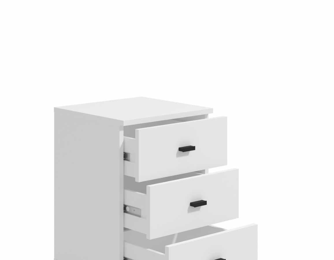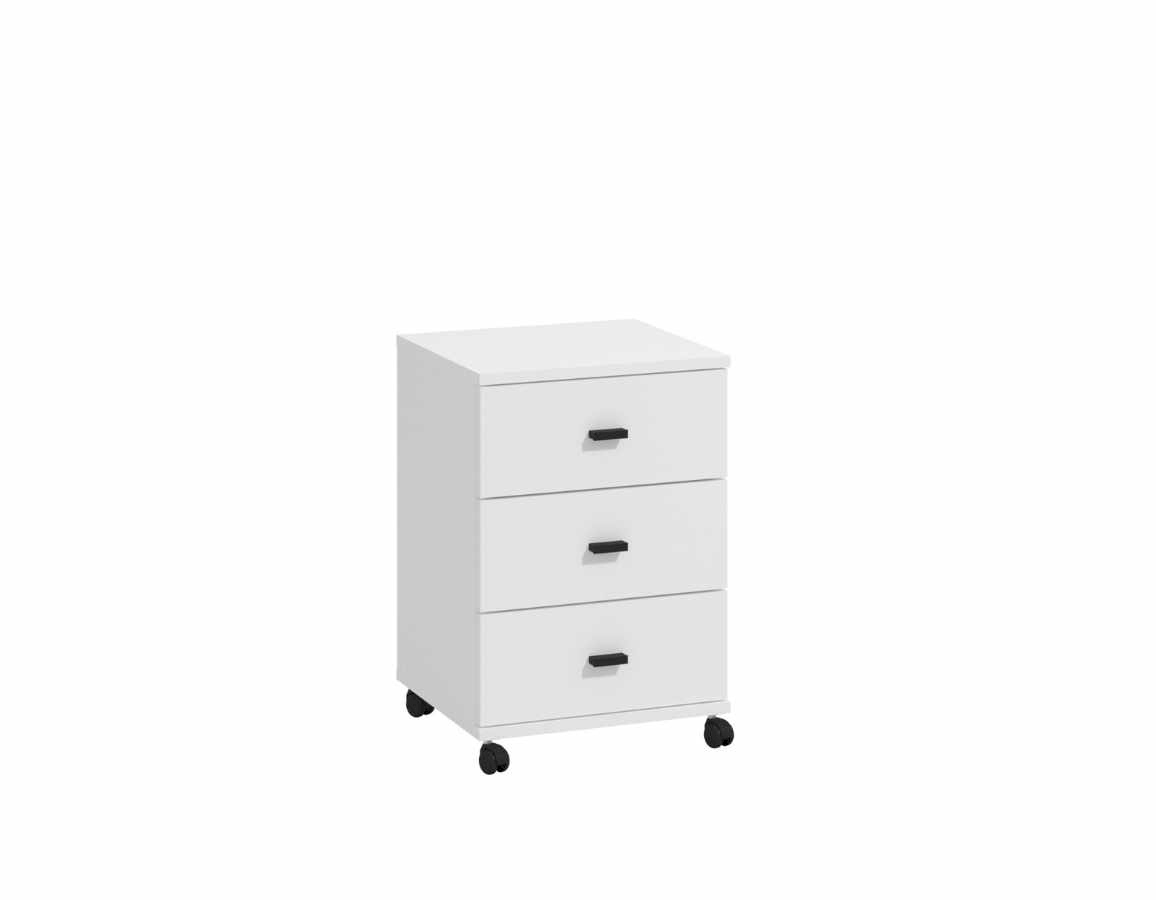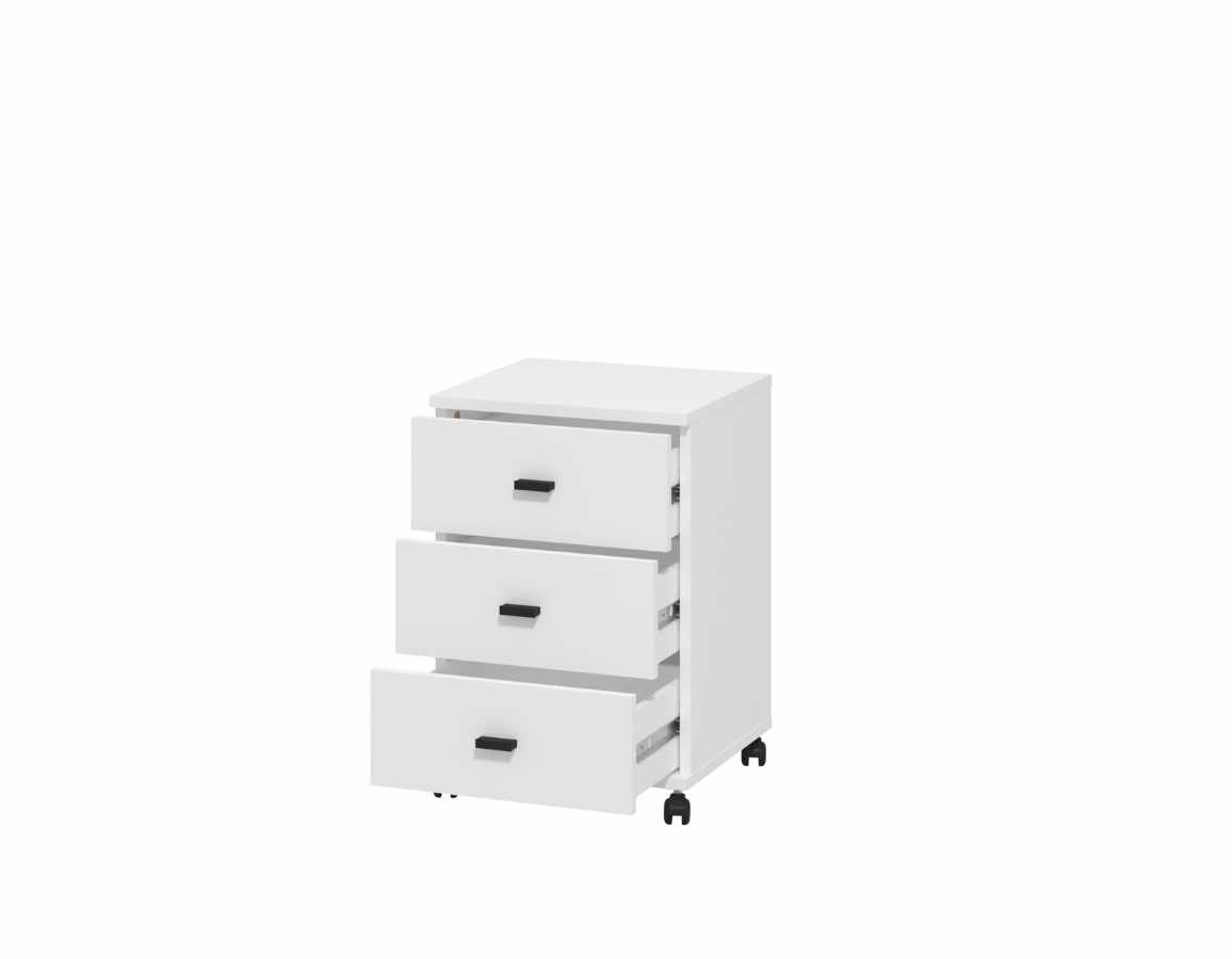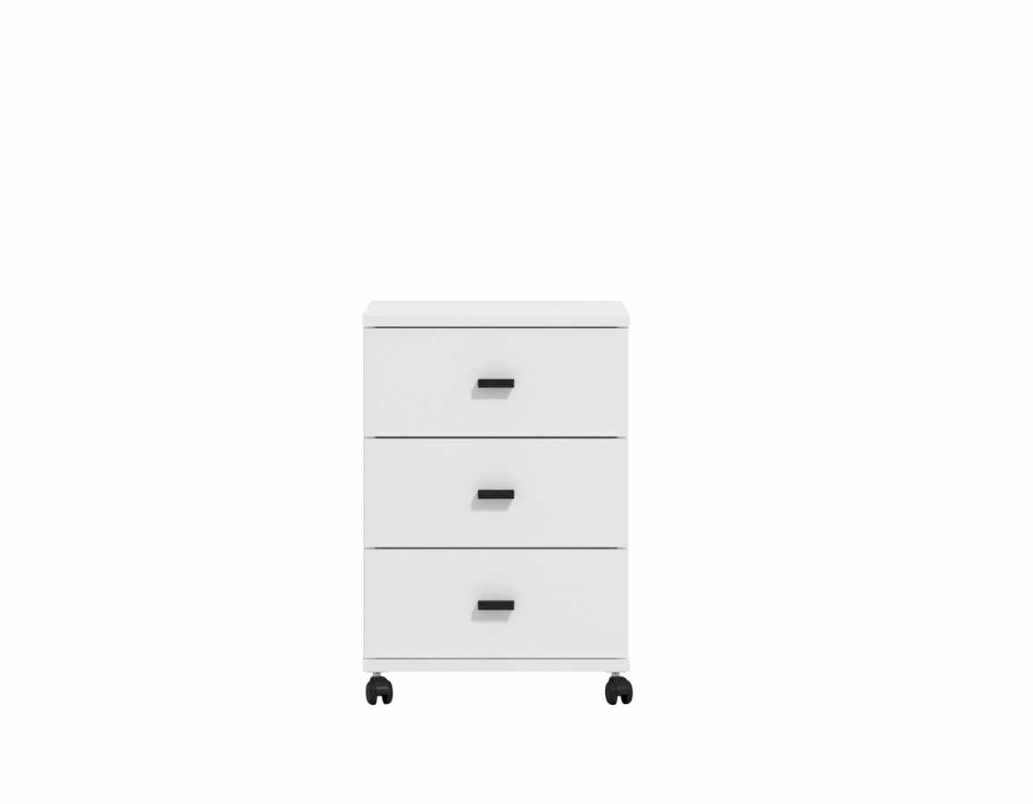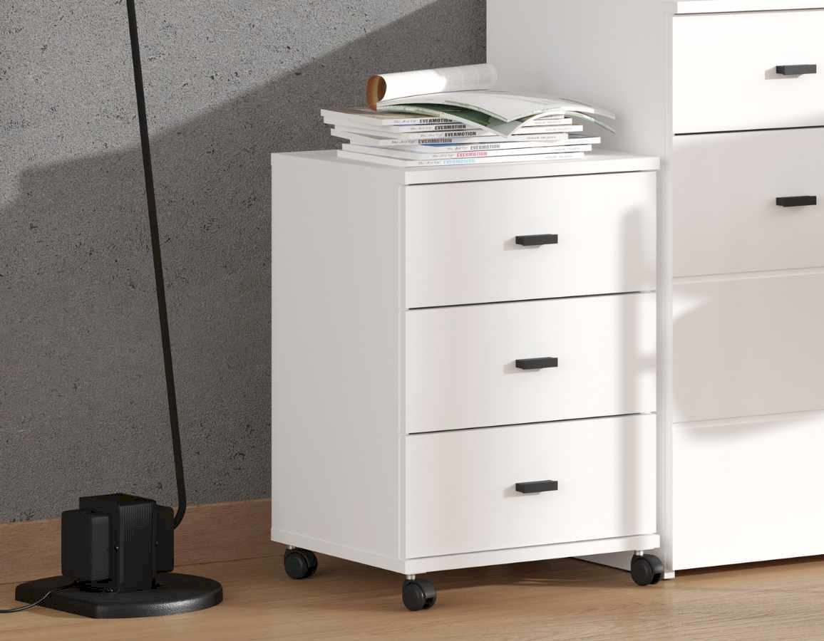 Ladičarska jedinica u bijeloj boji. Tri ladice omogućuju pregledno i praktično pohranjivanje stvari, a zahvaljujući kotačićima lako se pomiće po prostoru.