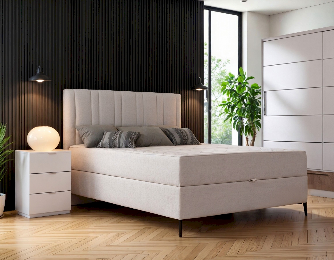 Francuski krevet MINT s ugrađenim madracem na bazi džepićastih opruga i mehanizmom za podizanje ispod kojeg se nalazi prostor za odlaganje.
