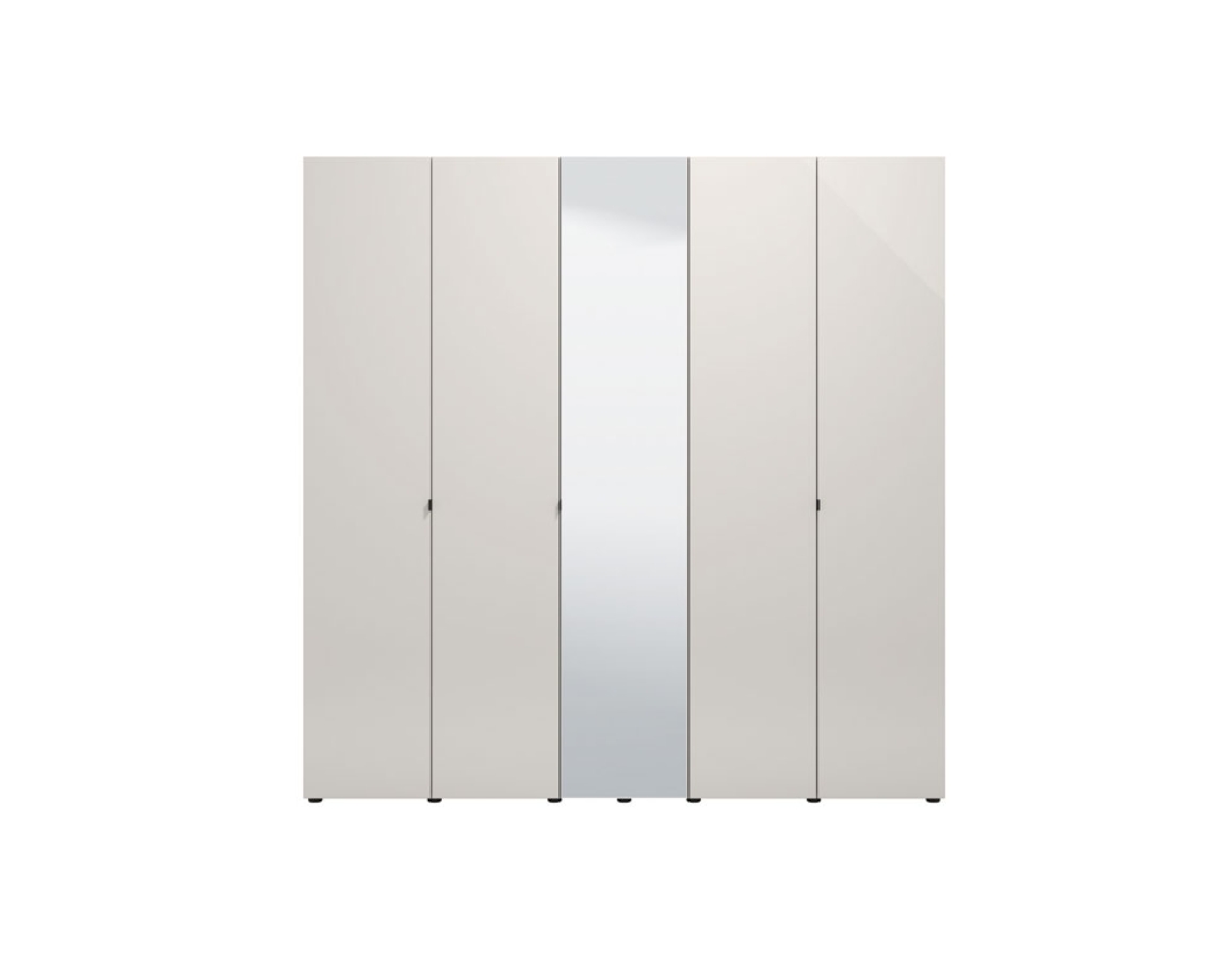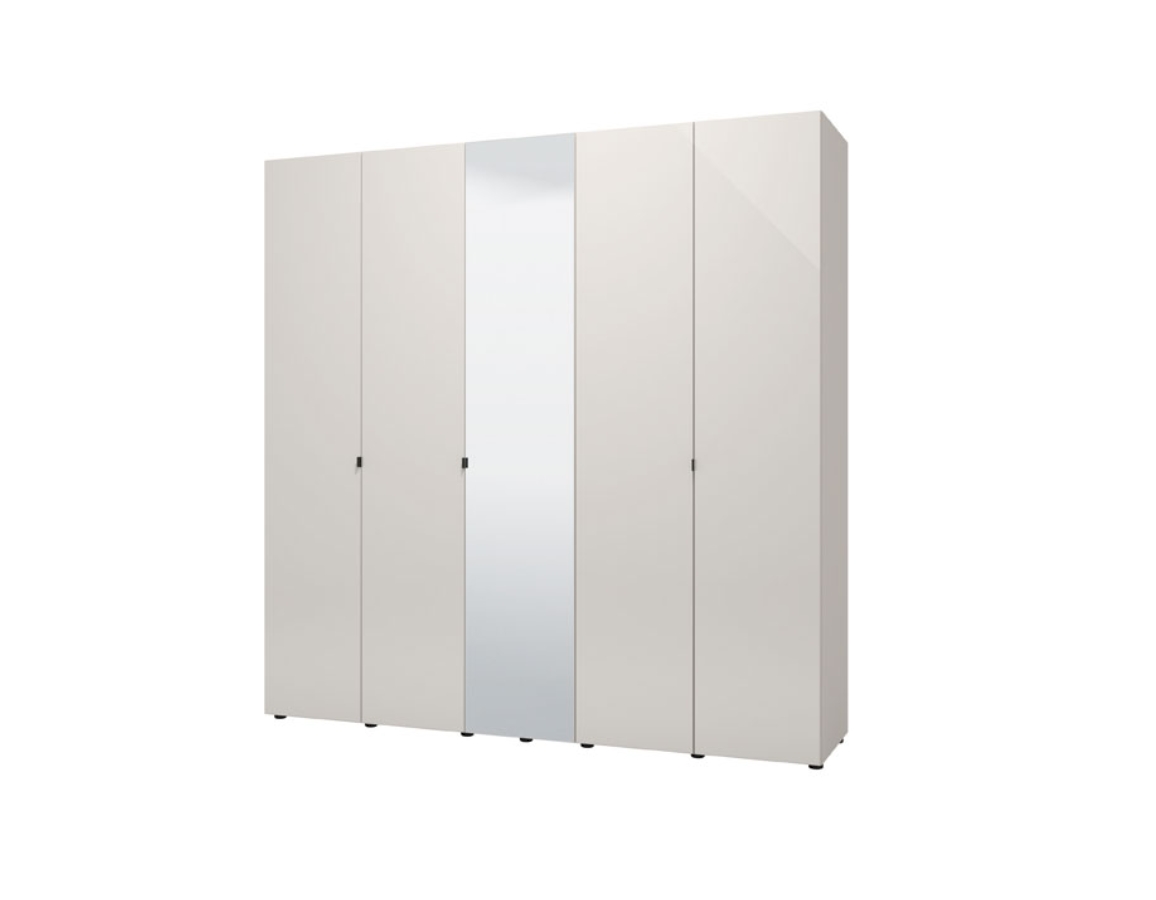 Funkcionalno dizajnersko rješenje za opremanje modernog ambijenta spavaće sobe. Ovaj ormar s pet vrata, s ogledalom u središnjem dijelu, doprinosi izraženoj estetici, eleganciji, ali i praktičnosti ambijenta spavaće sobe. Korisni prostor ovog modela sastoji se od šipki za ormar i pregrada.